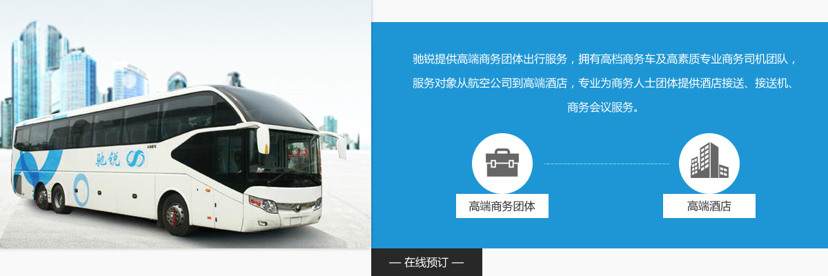 驰锐提供高端商务团体出行服务,拥有高档商务车及高素质专业商务司机团队,服务对象从航空公司到高端酒店,专业为商务人士团体提供酒店接送、接送机、商务会议服务。